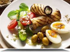 Ardeii copti se taie fasii si se marineaza timp de o ora in ulei de masline, hamsii si patrunjel tocat.