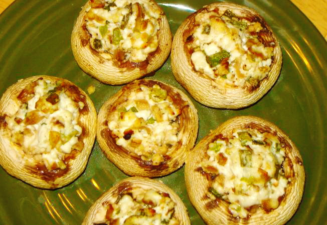 Se unge o tava incapatoare cu ulei. Se scurg palariile de apa si se aranjeaza in tava. Se presara deasupra sare si piper, apoi se umple fiecare ciuperca cu compozitia de mai sus.