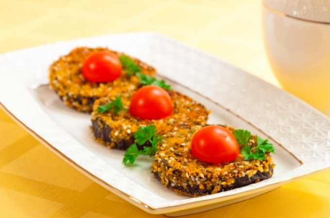 Rondelele de vanata se tavalesc prin ou, apoi prin amestecul de pesmeti si ierburi.
