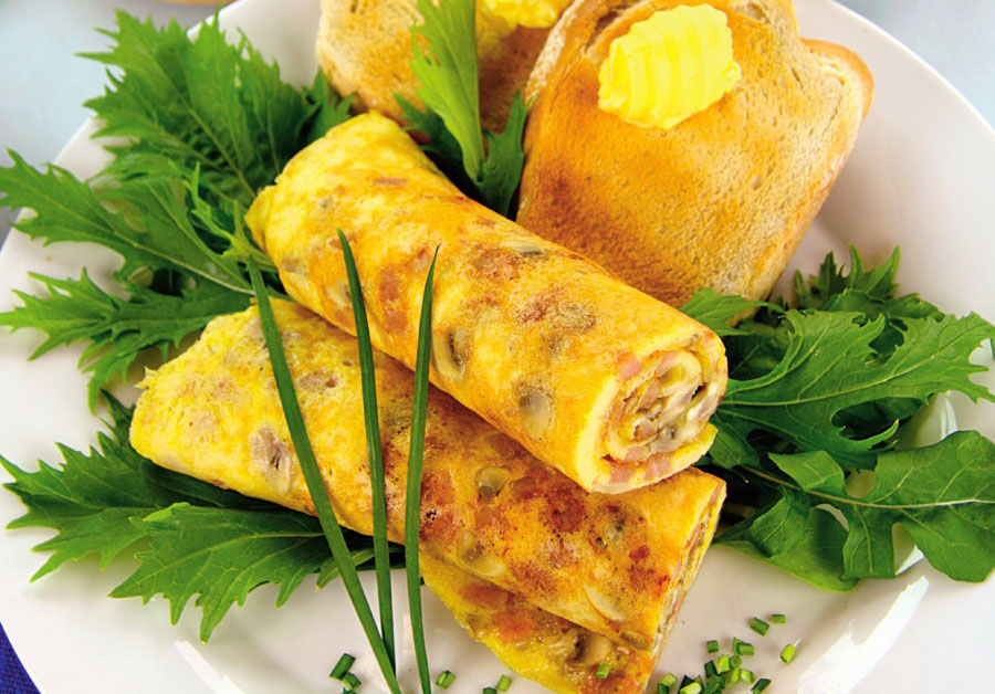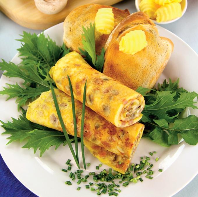 Ruladă din omletă cu ciuperci și bacon