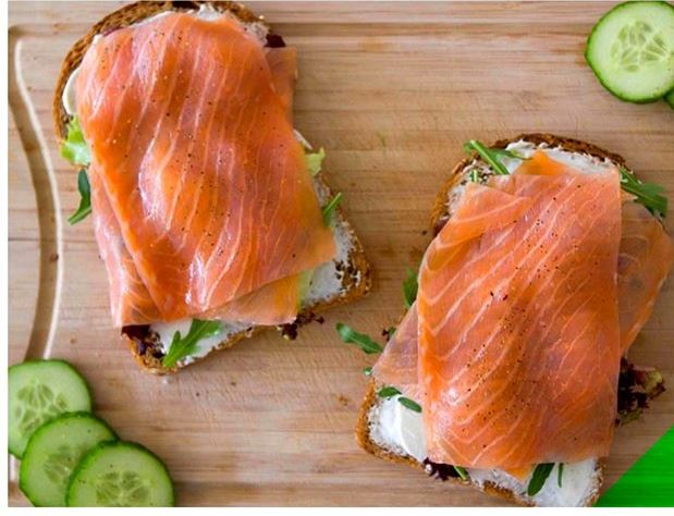 Sandwich cu cremă de brânză, rucola și somon