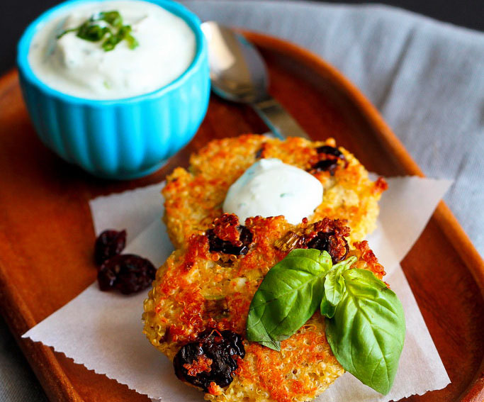 Intr-un bol, se combina quinoa fiert, ouale, pesmetii, ceapa verde, usturoiul, fisticul, ciresele uscate, branza feta, sarea si piperul. Toate ingredientele se amesteca pentru a se combina. Amestecul ar trebui sa fie destul de umed, astfel incat acesta sa nu se usuce, atunci cand se va coace, dar nici prea umed, astfel incat prajitura sa nu se destrame. Folositi apa suplimentar daca prajiturile nu sunt suficient de umede.