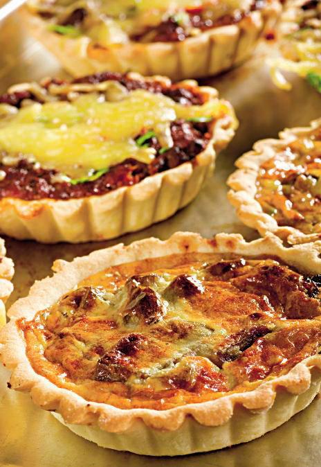 4. Se adauga carnea tocata, ciupercile spalate si taiate si se condimenteaza cu sare, piper si boia. Cand sunt gata, se scot pe o hartie de copt. Se amesteca cu triunghiurile de branza topita, cu doua linguri de smantana si cu un ou.