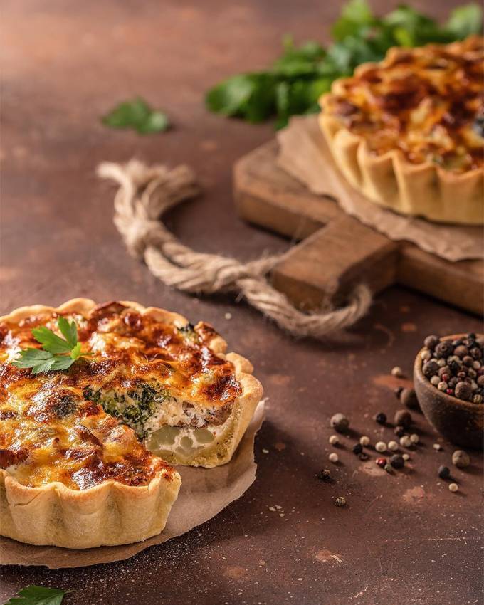 1. Se cerne faina pe o plansetă, se face o adancitura la mijloc si se pune un ou, si sarea. Se adauga untul taiat cuburi si se framanta. Se adauga treptat apa si se amesteca pana se obtine un aluat sfaramicios.
