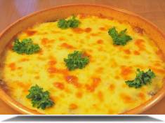 Compozitia din tigaie se imparte in ulcele, se presara cu cascaval si se gateste in cuptor, la temperatura de 160 de grade, timp de 30 de minute.