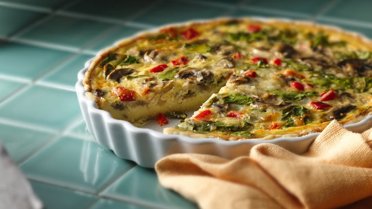 Quiche cu spanac, ciuperci și brânză Cheddar