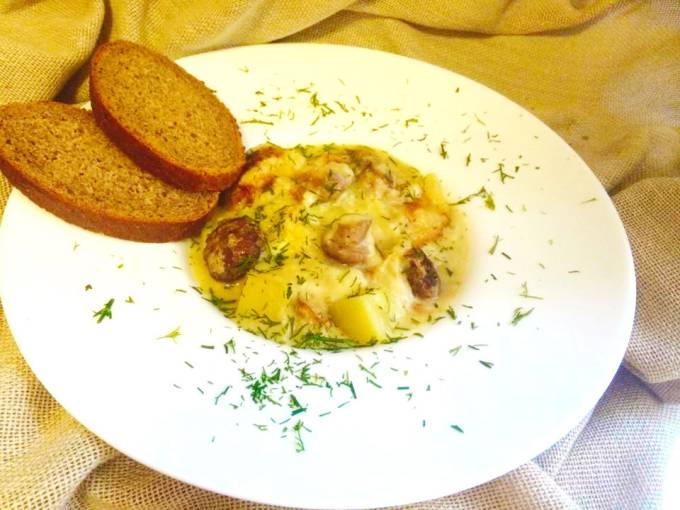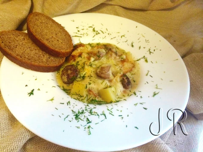 Cartofi cu ciuperci in sos de praz si smantana