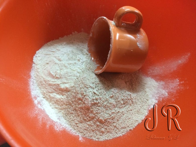 Amestecam faina cu praful de copt si sarea.