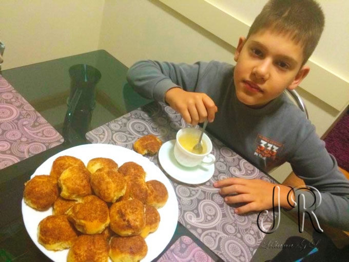 Intr-o farfurie amestecam zaharul brun cu scortisoara si pudram chiflele inainte de a le aseza in tava tapetata cu hartie de copt. Le imboldim usor cu furculita si le coacem cam 30 minute la 180 grade C, pana se rumenesc frumos.