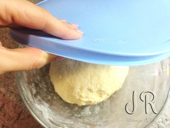 Framintam un aluat moale. Acoperim vasul cu un capac sau folie alimentara si-l lasam 2 ore in frigider.