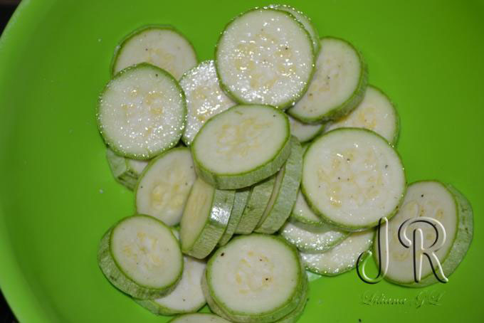 Dovleceii ii taiem felii si ii asezonam ca sare si piper.