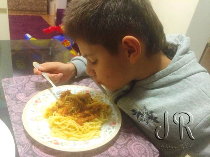 Fierbem sosul la foc mic sub capac pana se inmoaie telina, apoi adaugam vinul si pierul rosu macinat. Mai lasam sa fiarba un pic, dar deja fara capac.