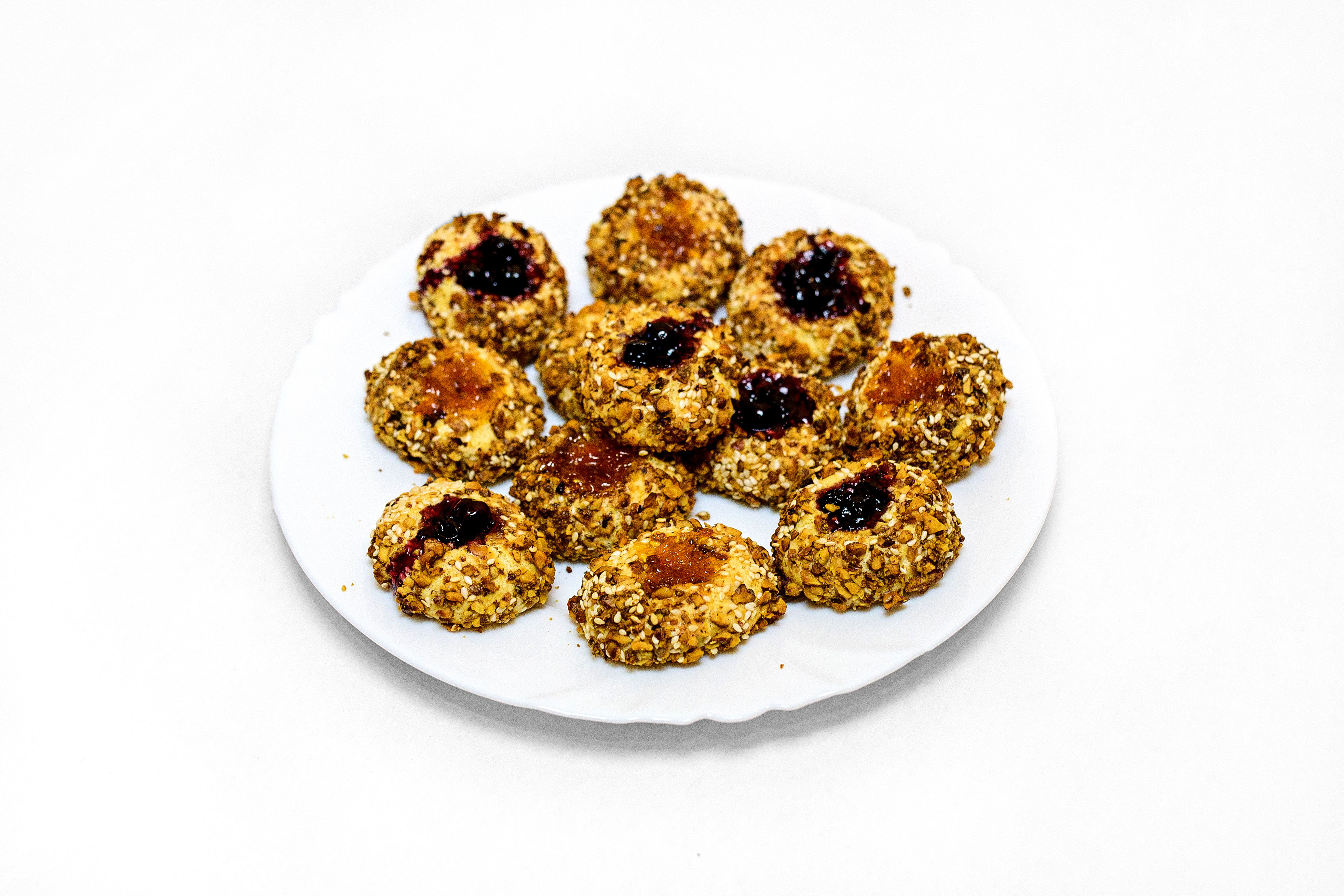 Din aluatul obtinut modelam bilute mici, le trecem prin albusul batut si prin nuci/seminte.