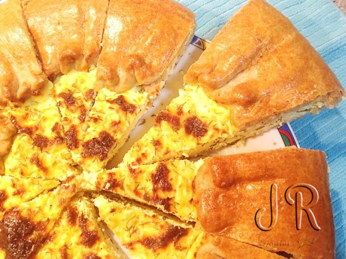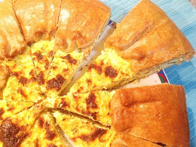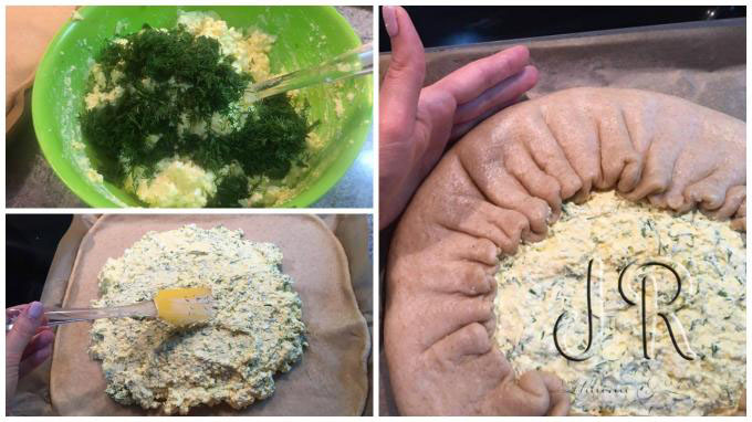 Pentru umplutura: 1 kg branza de vaci; 5 oua + 1 ou (pentru uns tarta); o legatura marar; sare.