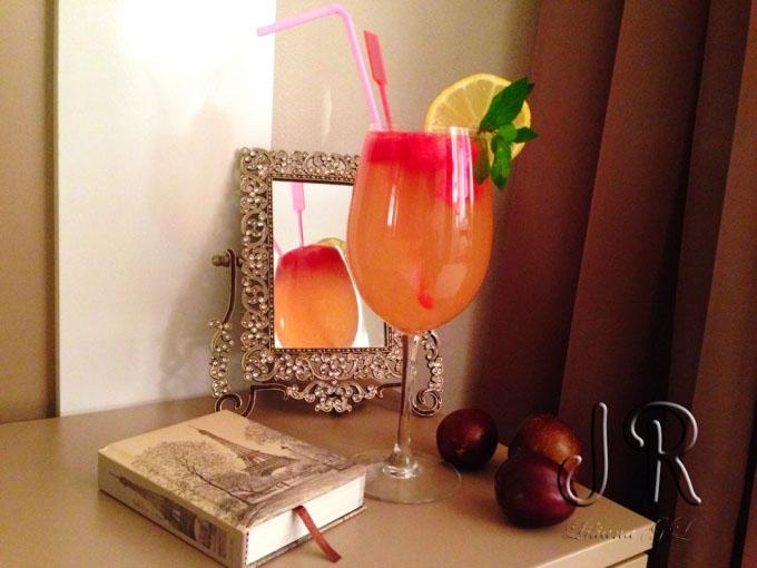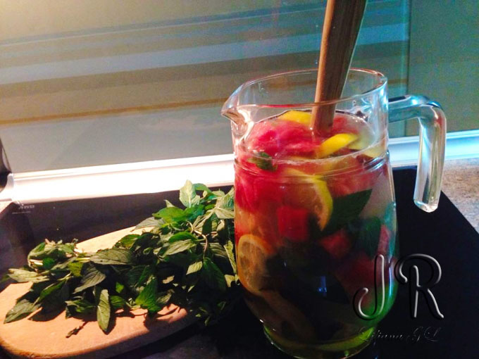 Limonada cu pepene rosu, prune si frunze de menta