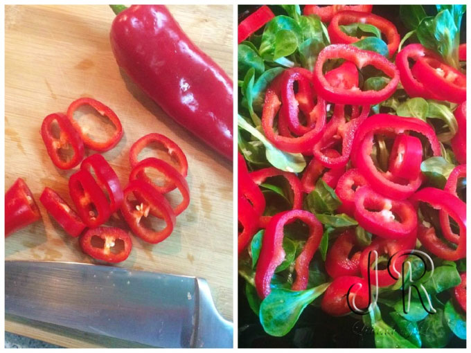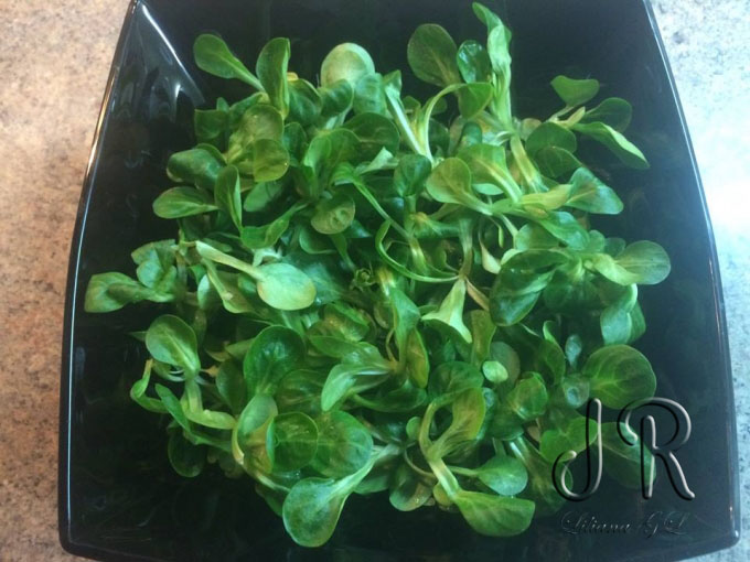 In bolul pentru salata asezam valeriana spalata si uscata bine.