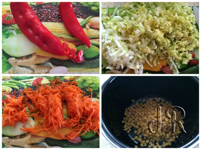Varza se taie marunt, iar ardeiul rondele.