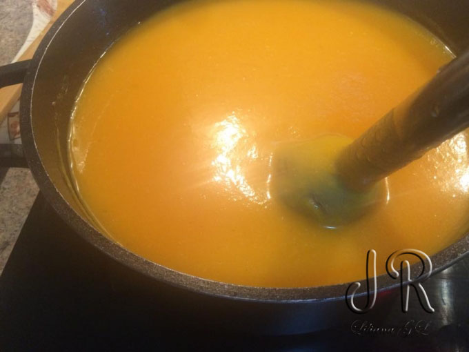 Iar restul mixam cu un blender de mana si condimentam cu sare, piper si nucsoara rasa. Pentru un gust mai picant adaugam boia de ardei iute.