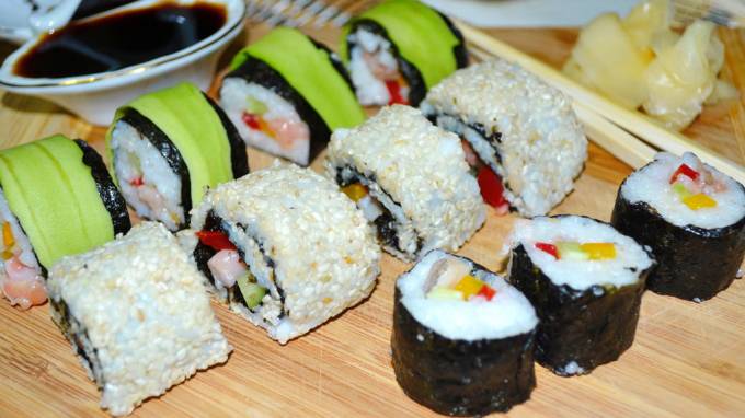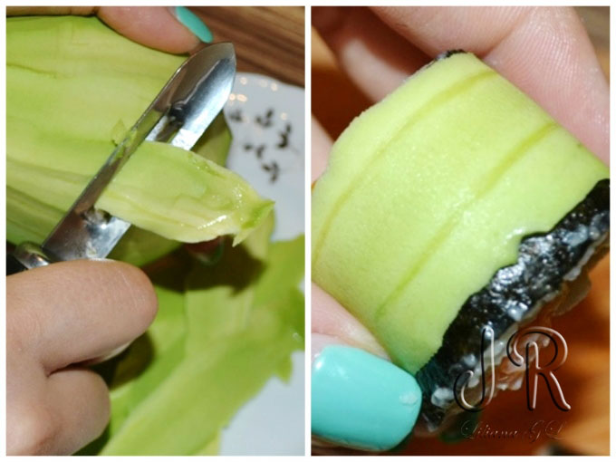 Cateva rulouri le-am decorat cu fasii subtiri de avocado.
