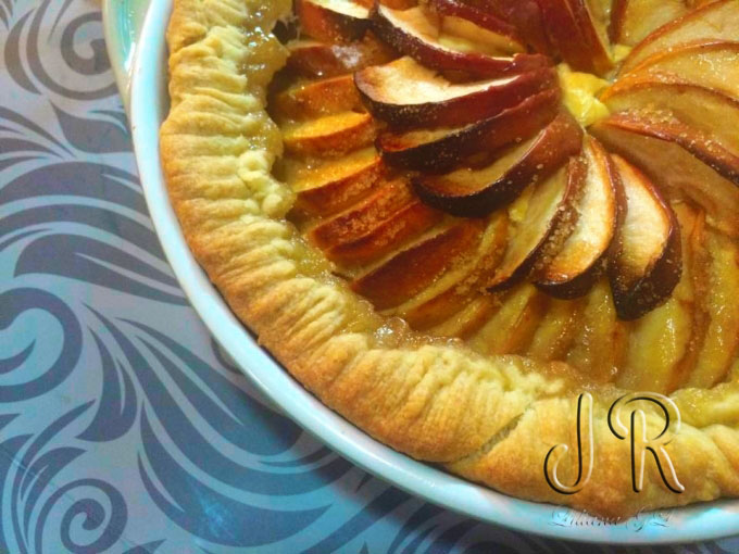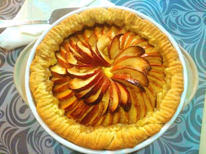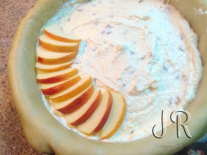 Tarta aromata cu branza, stafide si mere