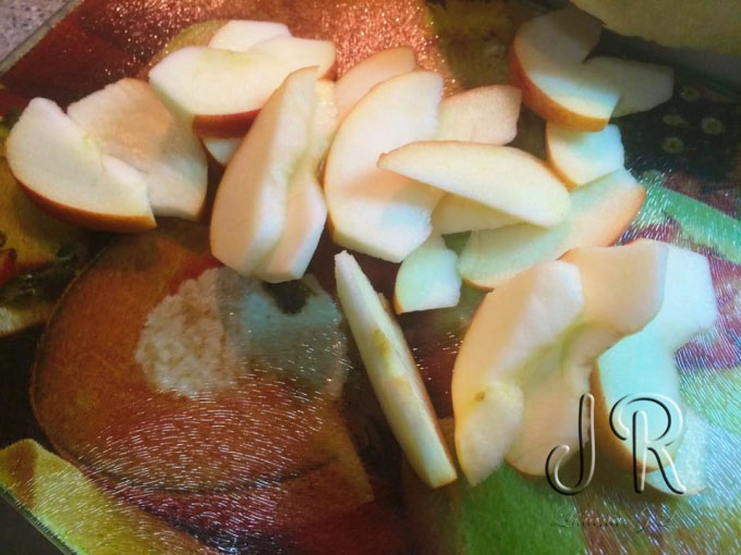 Merele le spalam si le curatam de cotoare, dar nu si de coaja.