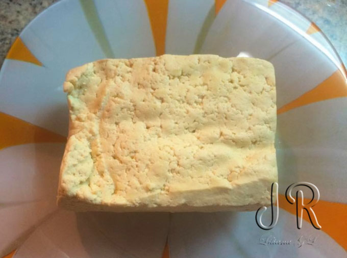 Branza tofu o taiem felii.