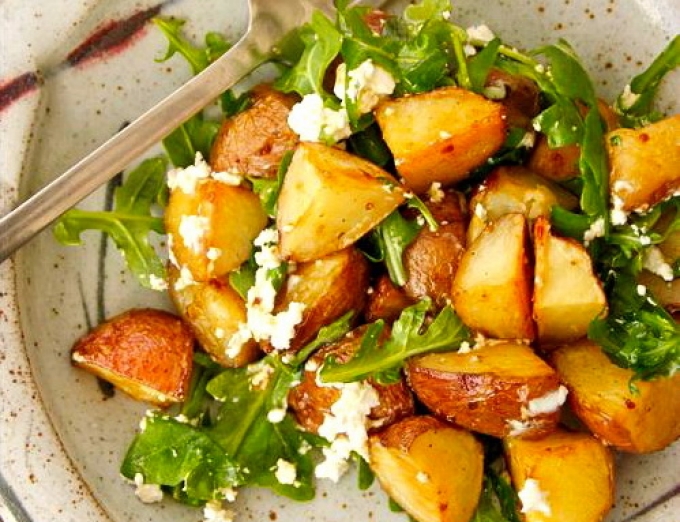 Cartofi copți cu rucola și brânză de capră