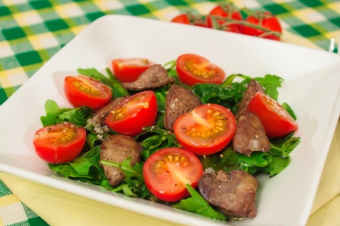 Salată cu ficat de pui și roșii cherry
