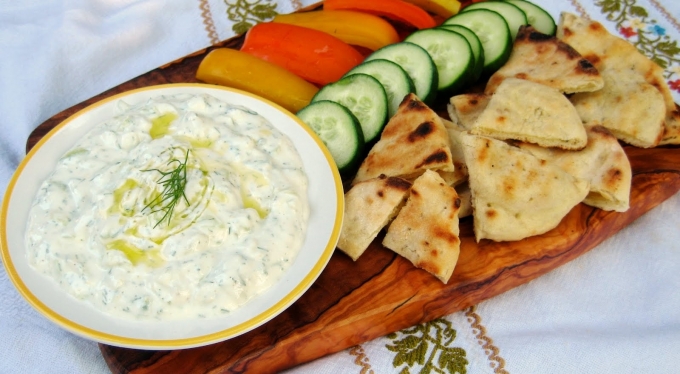 Salata Tzatziki se consuma rece, cu legume, cartofi prajiti sau garnitura pentru fripturi.