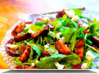 Salata de toamna cu prune caramelizate si branza de capra