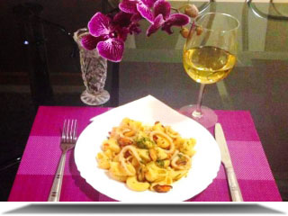 Va propun o bunatate de mancare - paste cu fructe de mare, inecate intr-un sos delicios si aromat de rosii. Se prepara usor si este foarte gustos.